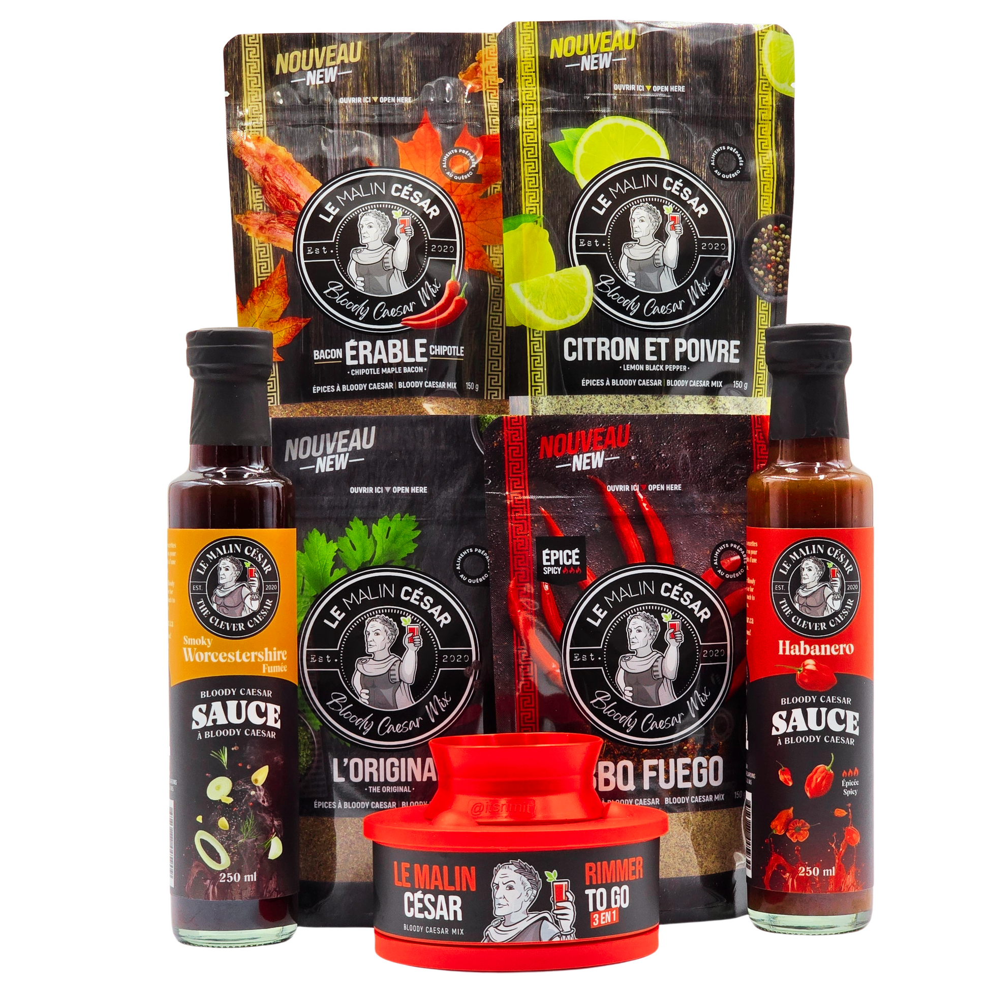 4 Sacs d'Épices uniques : Mets du piquant dans tes recettes avec nos mélanges d'épices exclusifs, soigneusement préparés pour rehausser les saveurs de tes plats préférés. Original, Bacon Érable Chipotle, Bbq Fuego, Citron et Poivre